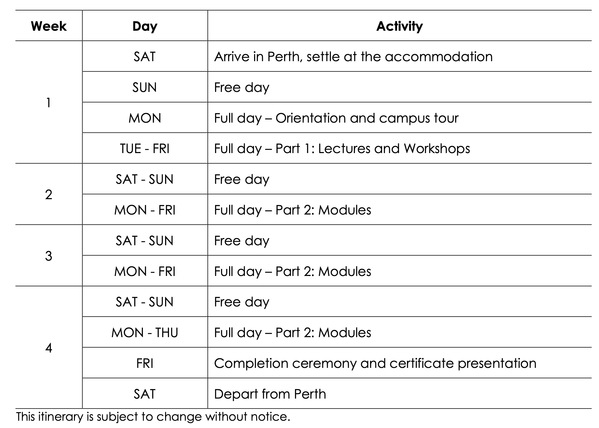 Winter School Study Program旨在为学习成为卫生专业人员的留学生提供一个体验澳大利亚医疗保健系统的机会,同时学习医学研究方法、研究伦理和科学写作技巧。本课程包括一周的讲座和研讨会以及三周的模块课程,包括人类疾病的机理、全科实践与病人咨询技能的发展、医学研究的技术与经验。此外,学生还可在线学习西澳大学本科健康科学课程。具体包括: